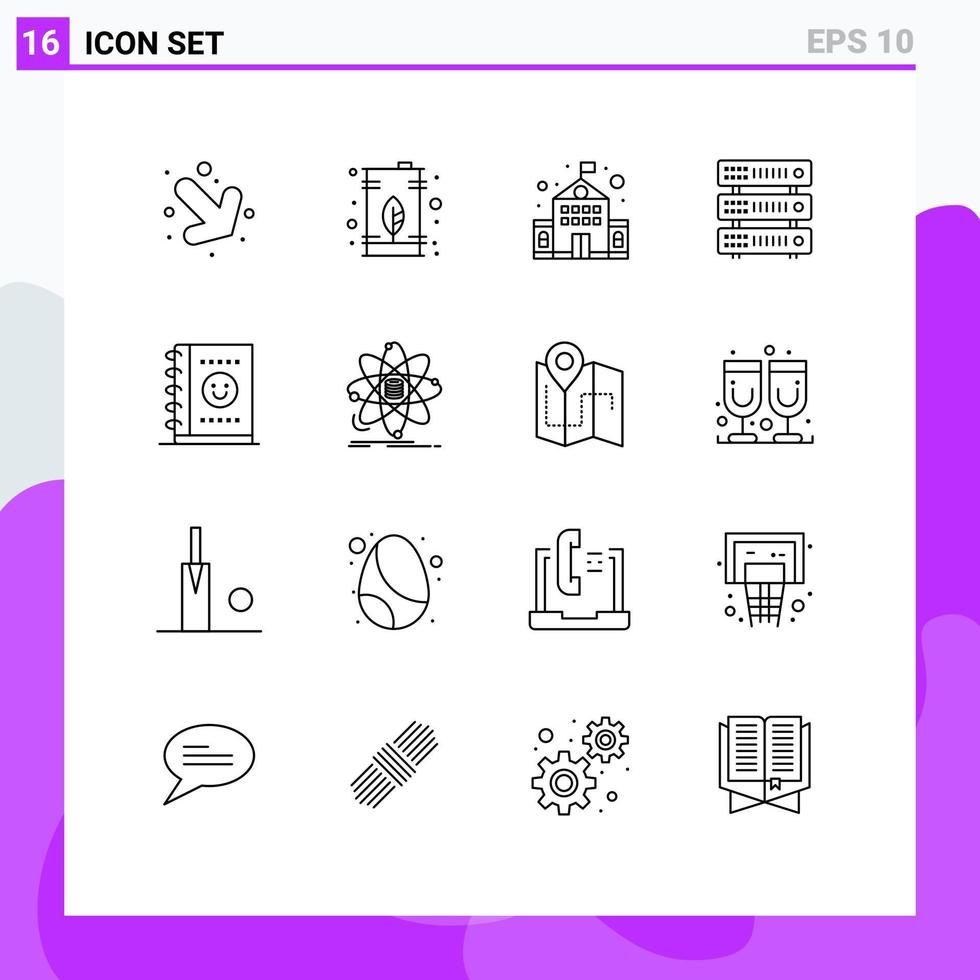 16 Outline concept for Websites Mobile and Apps planner notebook building hosting rack Editable Vector Design Elements Free Vector