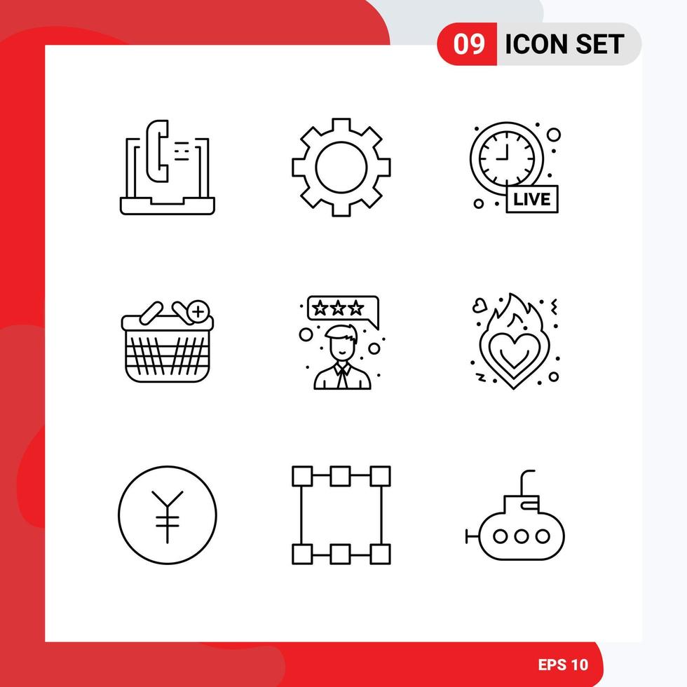 Set of 9 Vector Outlines on Grid for customer satisfaction shopping technology ecommerce live update Editable Vector Design Elements Free Vector