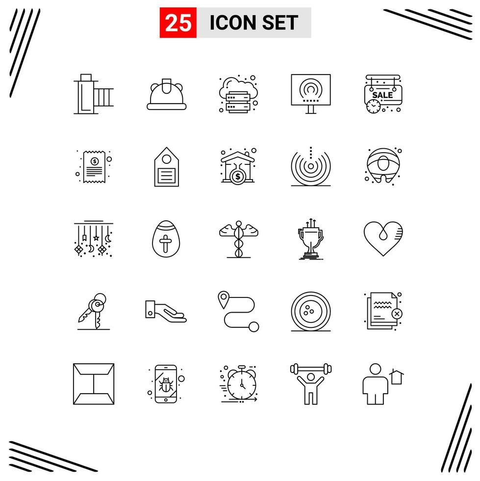 Set of 25 Modern UI Icons Symbols Signs for stream radio cloud office platform Editable Vector Design Elements