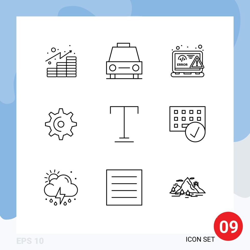 9 Universal Outlines Set for Web and Mobile Applications teeth gear vehicles wheel web Editable Vector Design Elements