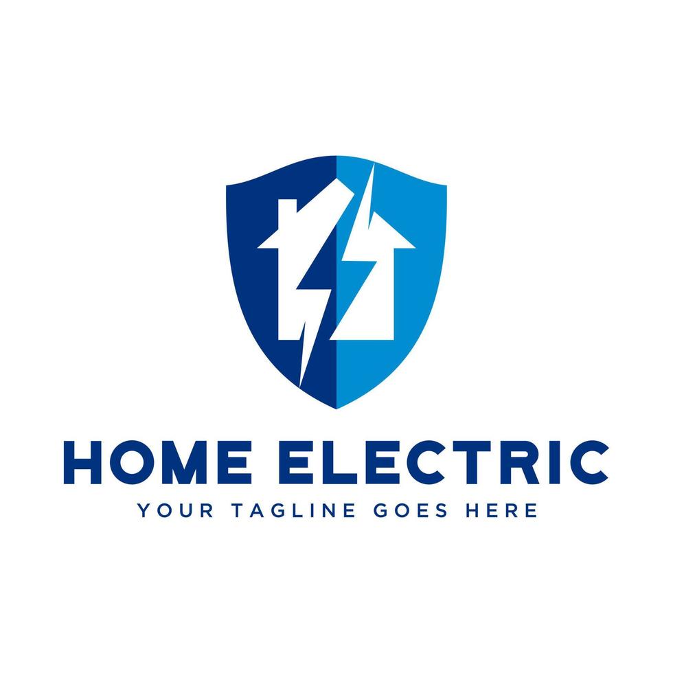 Unique house and electricity or power in guard or shield image graphic icon logo design abstract concept vector stock. Can be used as a symbol related to home or tech Pro Vector