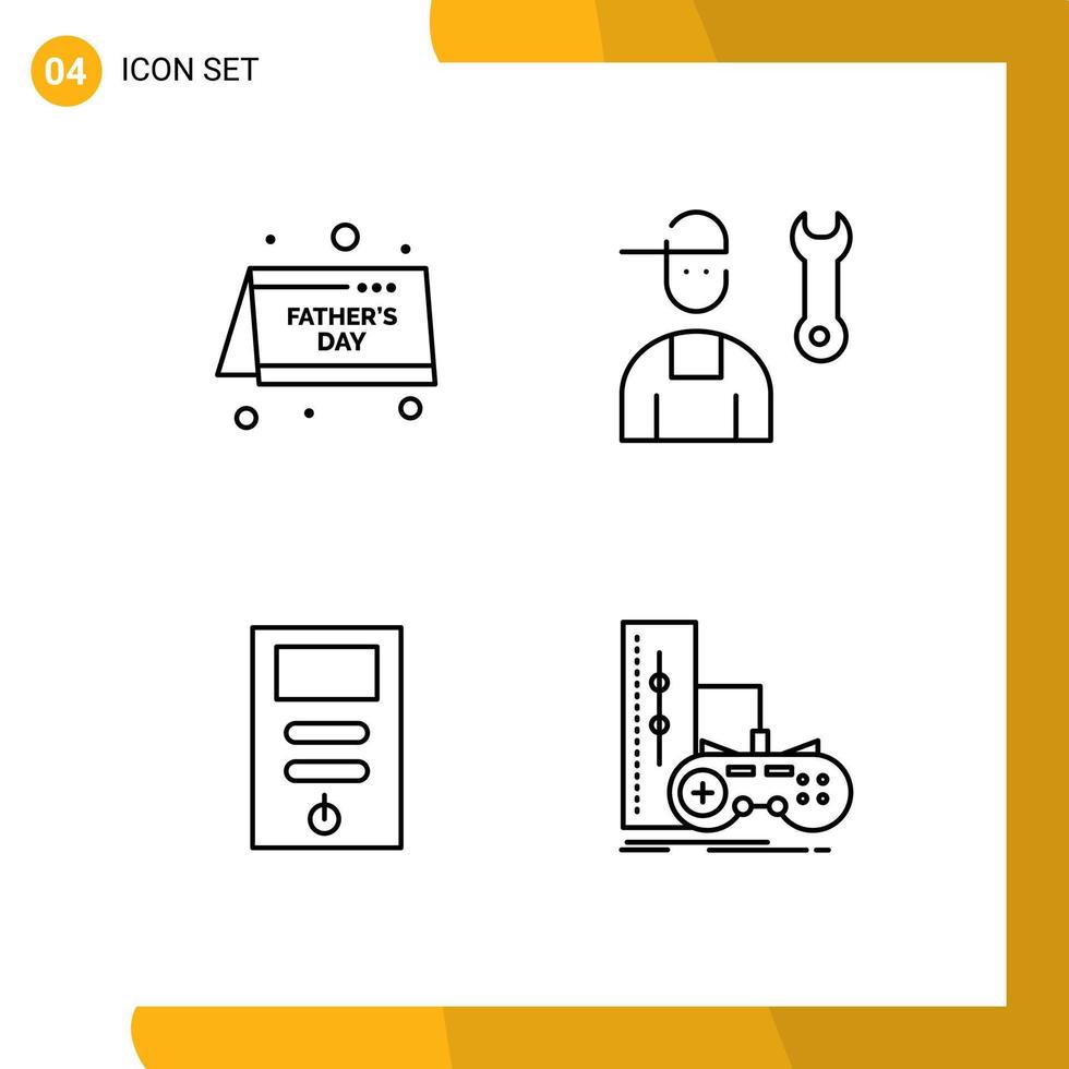 Set of 4 Modern UI Icons Symbols Signs for calendar computer fathers day mechanic pc Editable Vector Design Elements Free Vector