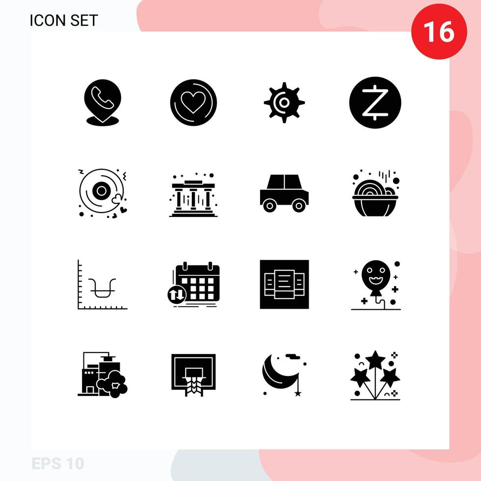 User Interface Pack of 16 Basic Solid Glyphs of wedding heart gear disk blockchain Editable Vector Design Elements Free Vector
