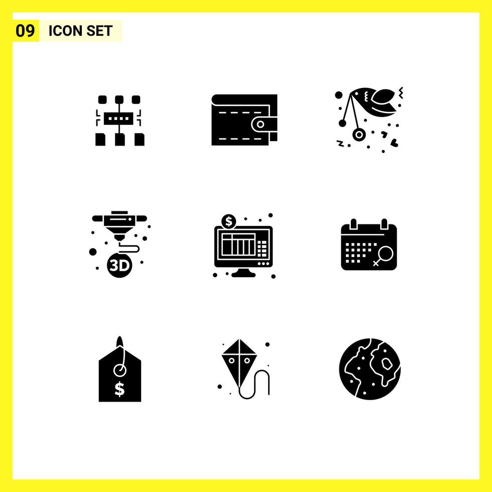 Mobile Interface Solid Glyph Set of 9 Pictograms of internet printing fly print printing Editable Vector Design Elements