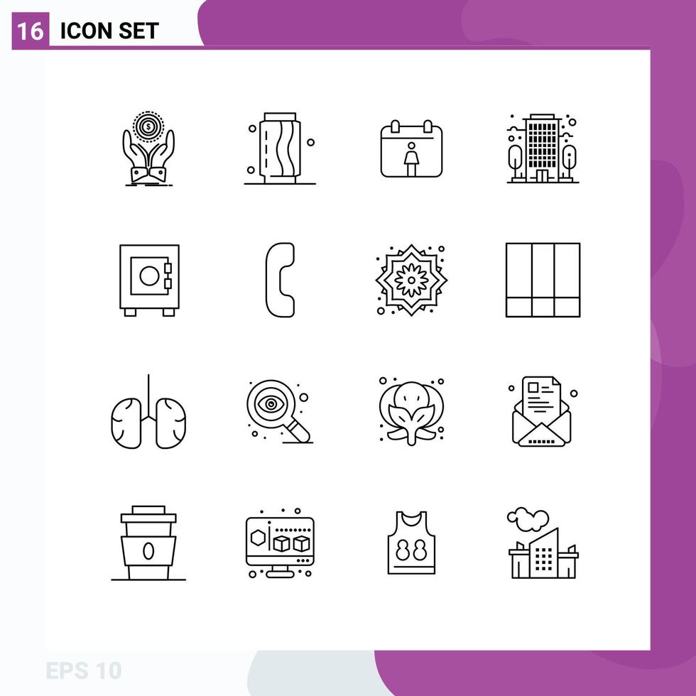 16 User Interface Outline Pack of modern Signs and Symbols of user locker food office building Editable Vector Design Elements