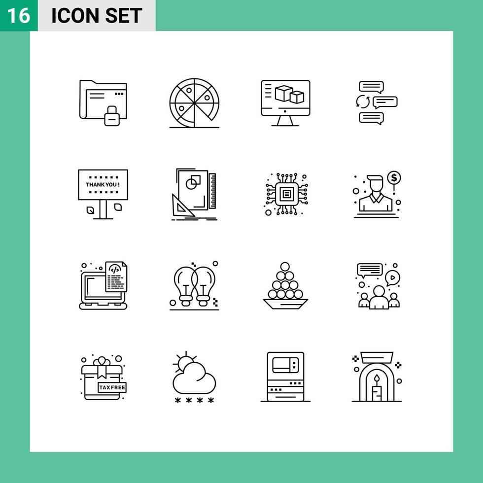 Pack of 16 Modern Outlines Signs and Symbols for Web Print Media such as robot dialogue computer conversation chat Editable Vector Design Elements