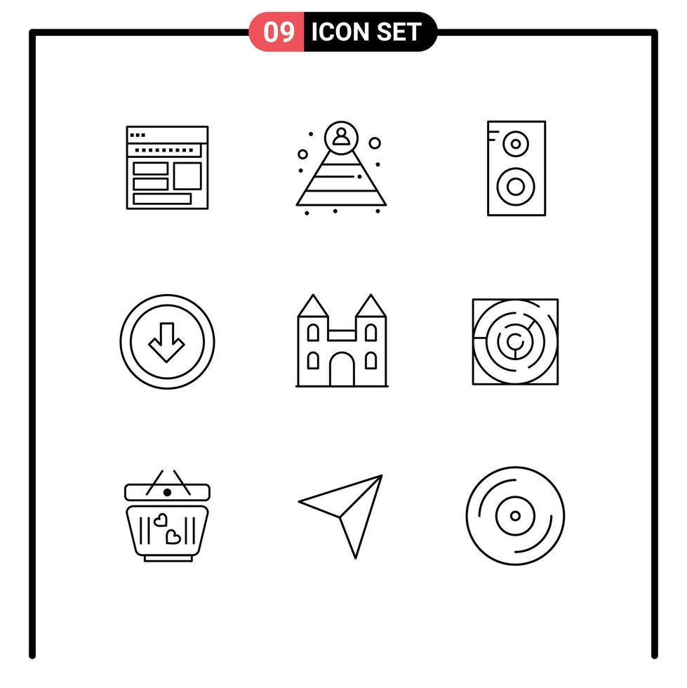Mobile Interface Outline Set of 9 Pictograms of down user pyramid button school Editable Vector Design Elements