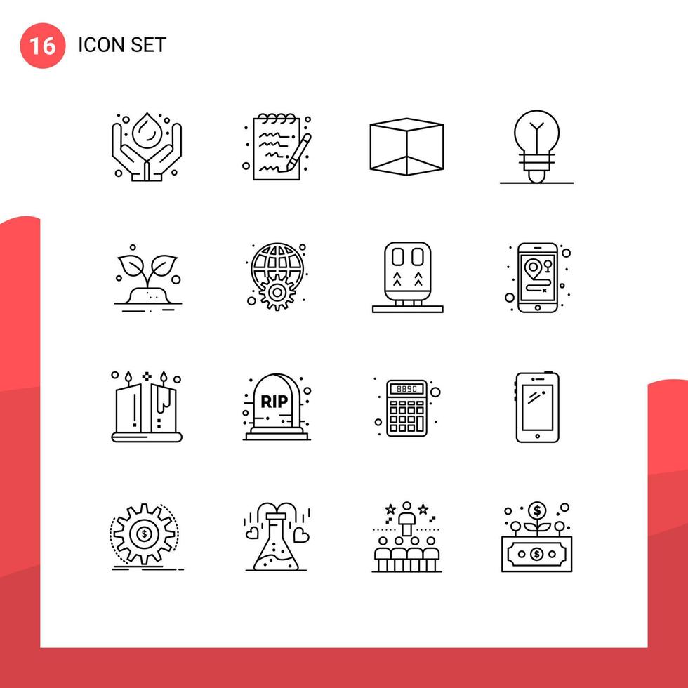 User Interface Pack of 16 Basic Outlines of save trees box green idea Editable Vector Design Elements Free Vector