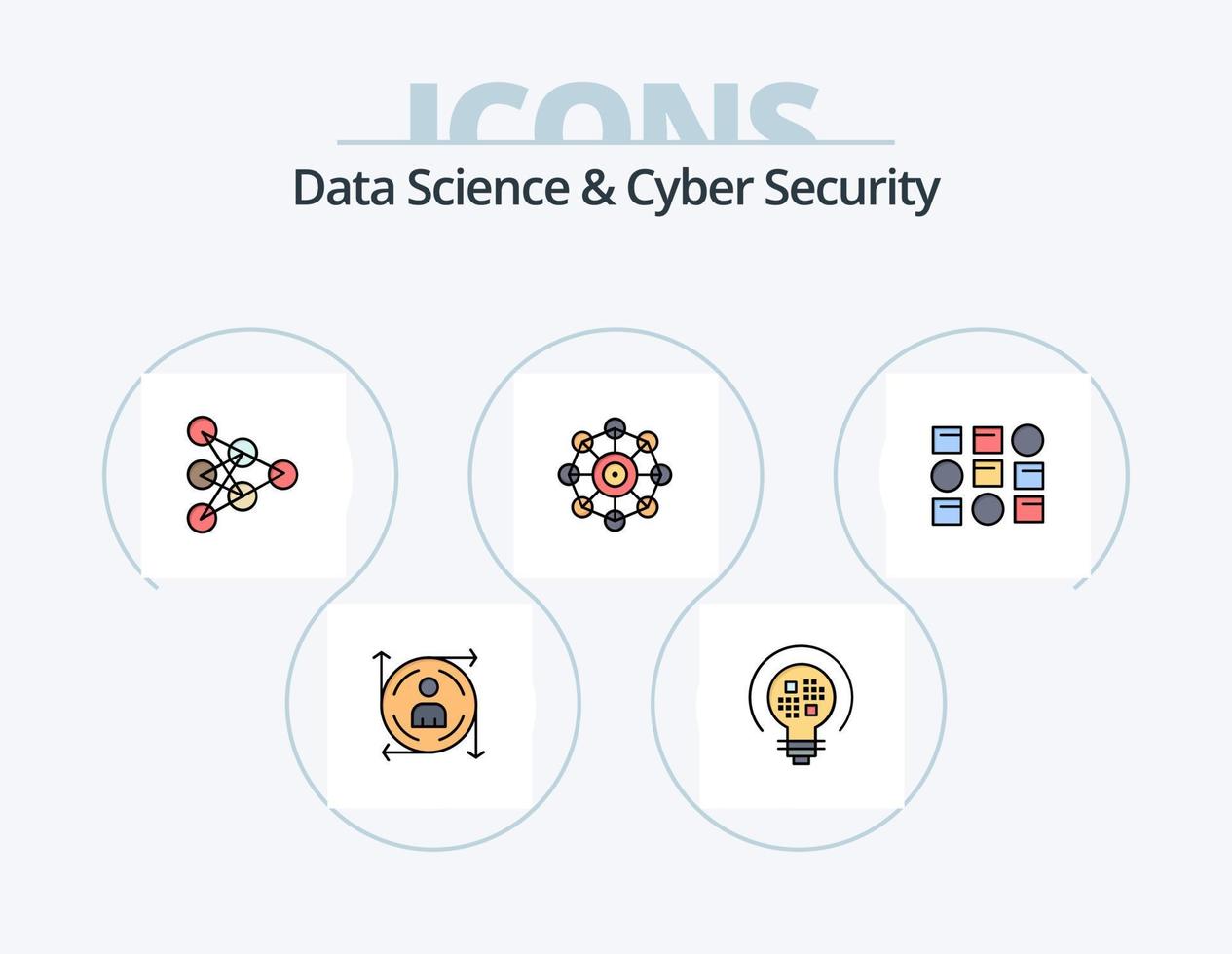 Data Science And Cyber Security Line Filled Icon Pack 5 Icon Design. monitor. data scince. globe. clock. measure Free Vector