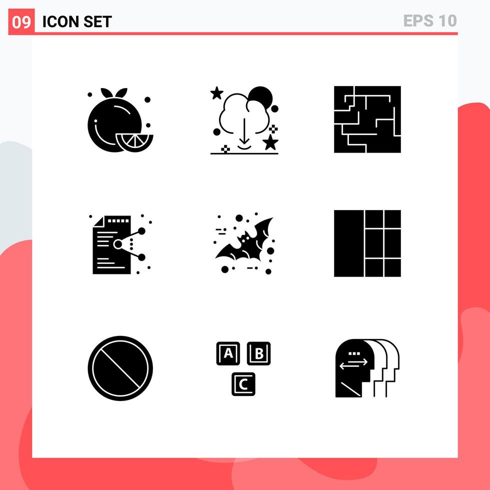 Group of 9 Solid Glyphs Signs and Symbols for online document save file maze Editable Vector Design Elements