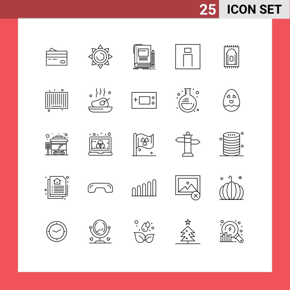 25 Universal Lines Set for Web and Mobile Applications man school beach notebook business Editable Vector Design Elements