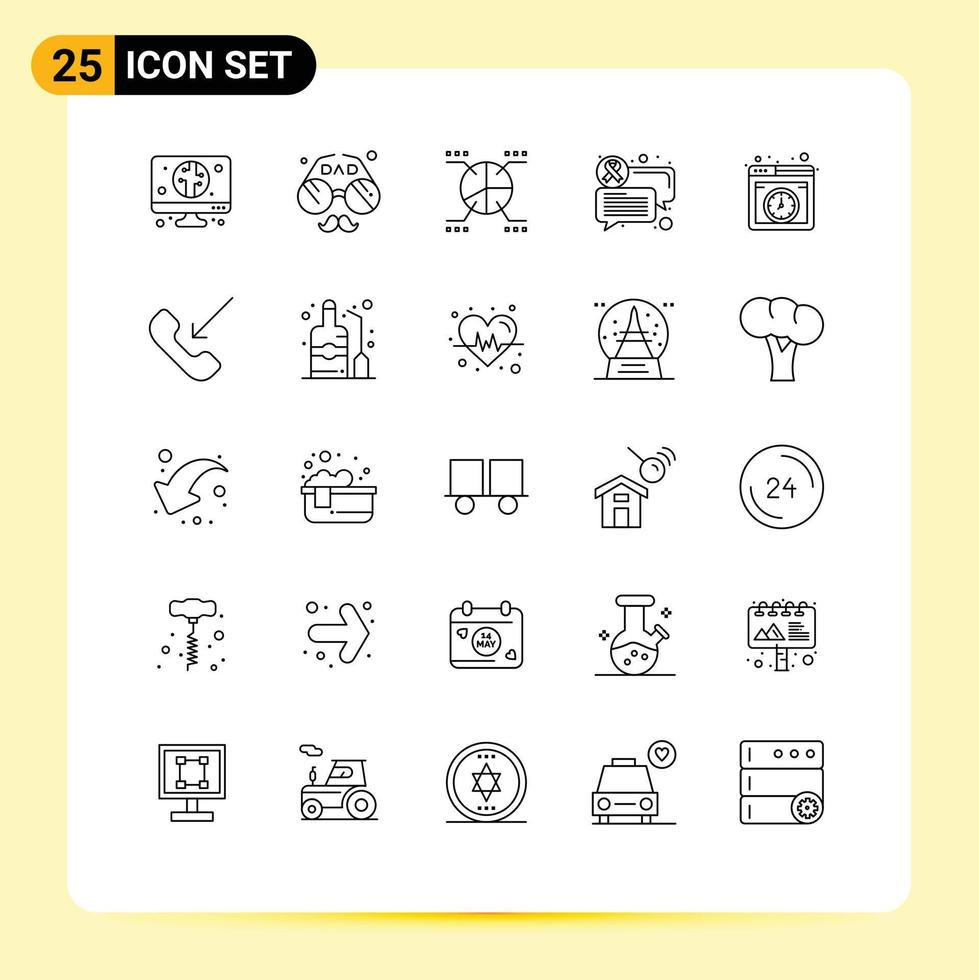 Editable Vector Line Pack of 25 Simple Lines of internet cloud chart sign chat Editable Vector Design Elements