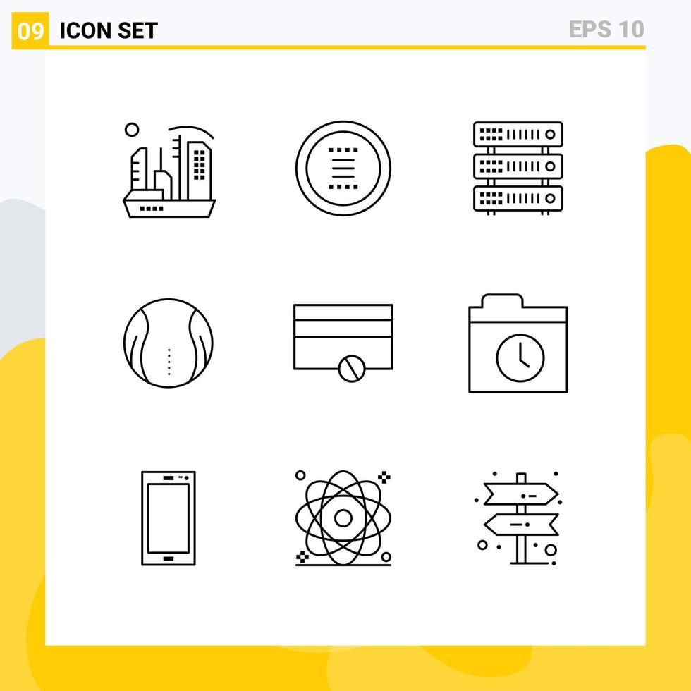 9 Universal Outlines Set for Web and Mobile Applications game tennis menu ball server Editable Vector Design Elements