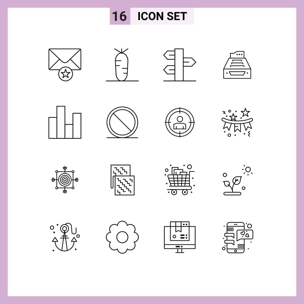 16 User Interface Outline Pack of modern Signs and Symbols of storage database panel data accounting Editable Vector Design Elements Free Vector