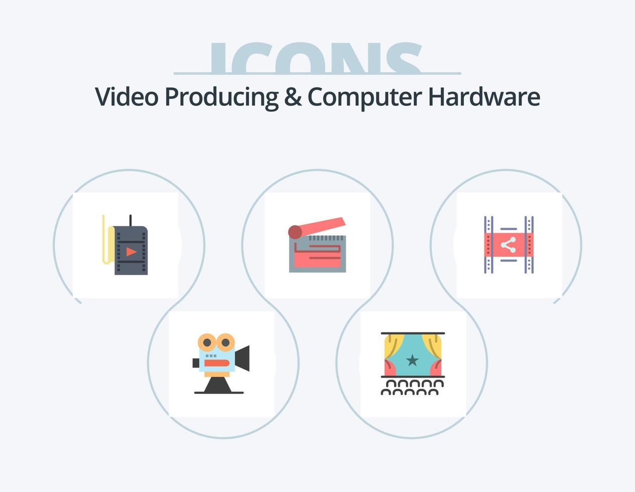 Video Producing And Computer Hardware Flat Icon Pack 5 Icon Design. clapper. board. performance. action. studio vector