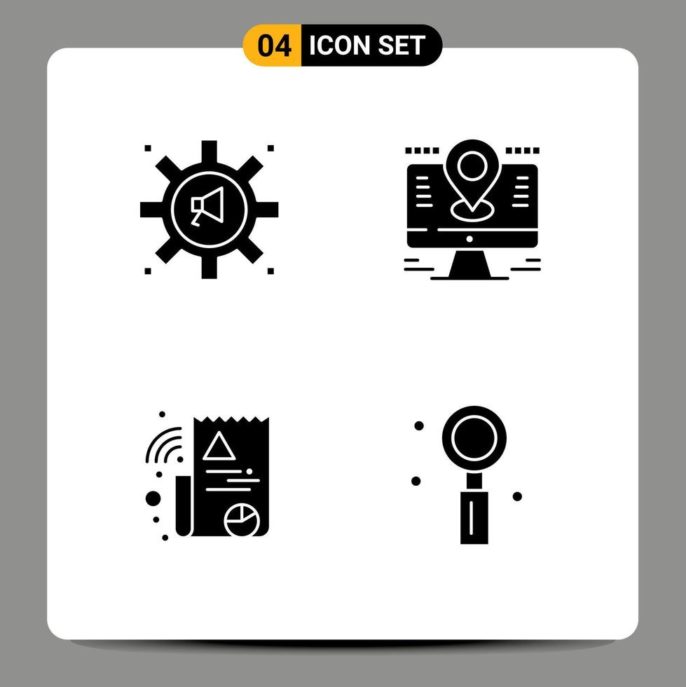Pack of 4 Modern Solid Glyphs Signs and Symbols for Web Print Media such as advertising pin marketing computer graph Editable Vector Design Elements