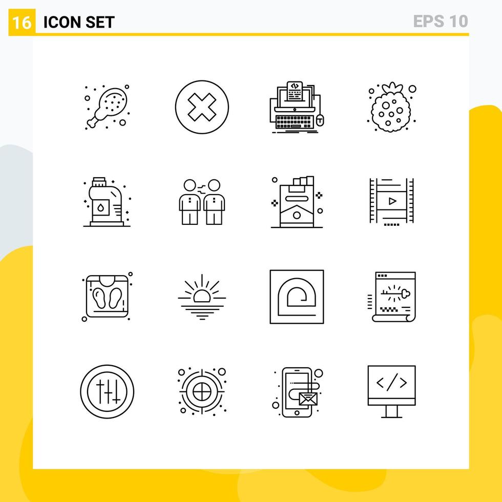 16 Outline concept for Websites Mobile and Apps mechanical raspberry coding healthy berry Editable Vector Design Elements
