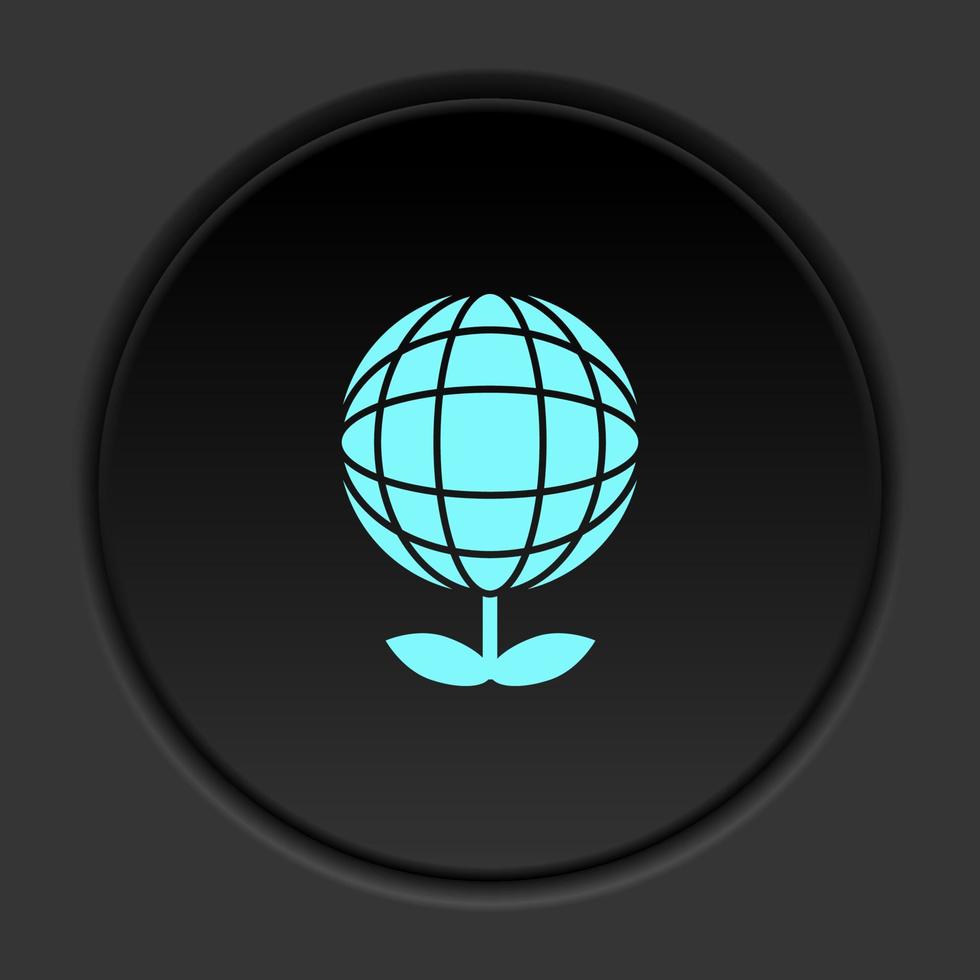 Round button icon, Ecology, globe, plant. Button banner round, badge interface for application illustration on dark background Pro Vector and Pro SVG