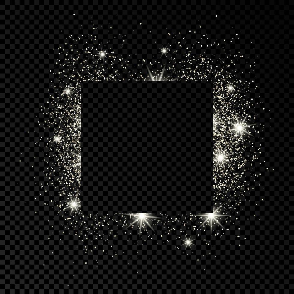 Square frame with silver glitter on dark transparent background. Empty background. Vector illustration. Pro Vector
