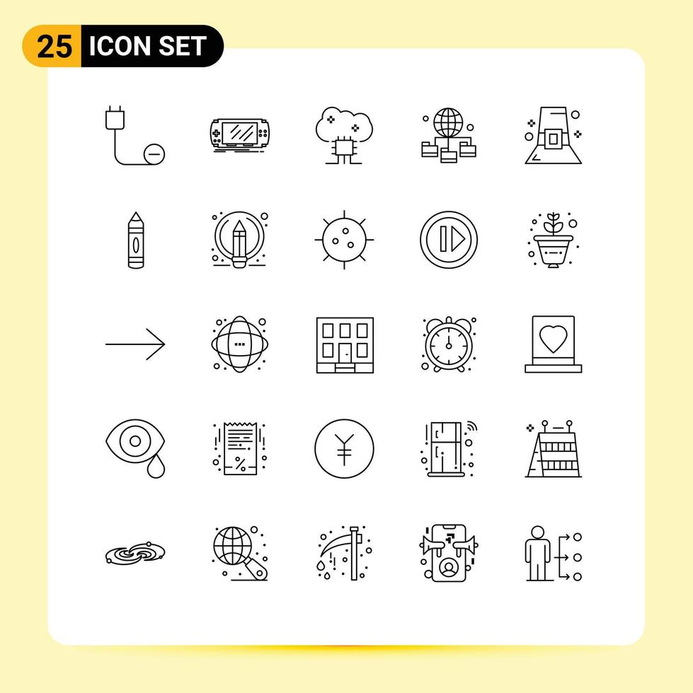 Group of 25 Lines Signs and Symbols for technology globe gaming cloud software cloud networking Editable Vector Design Elements