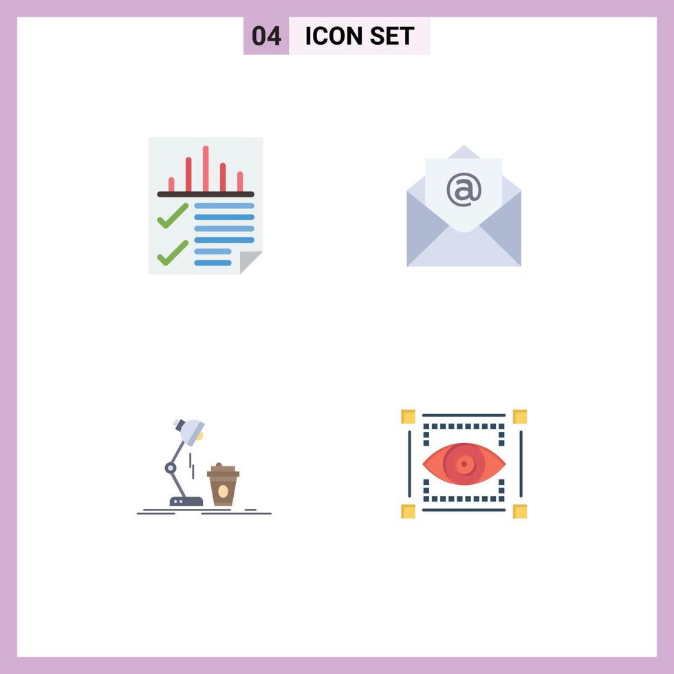 Universal Icon Symbols Group of 4 Modern Flat Icons of data design report mail lamp Editable Vector Design Elements