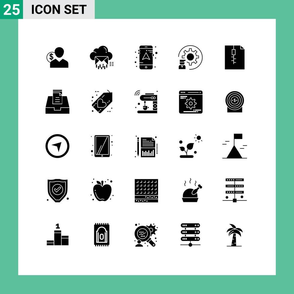Pack of 25 creative Solid Glyphs of development coding mail navigation map Editable Vector Design Elements