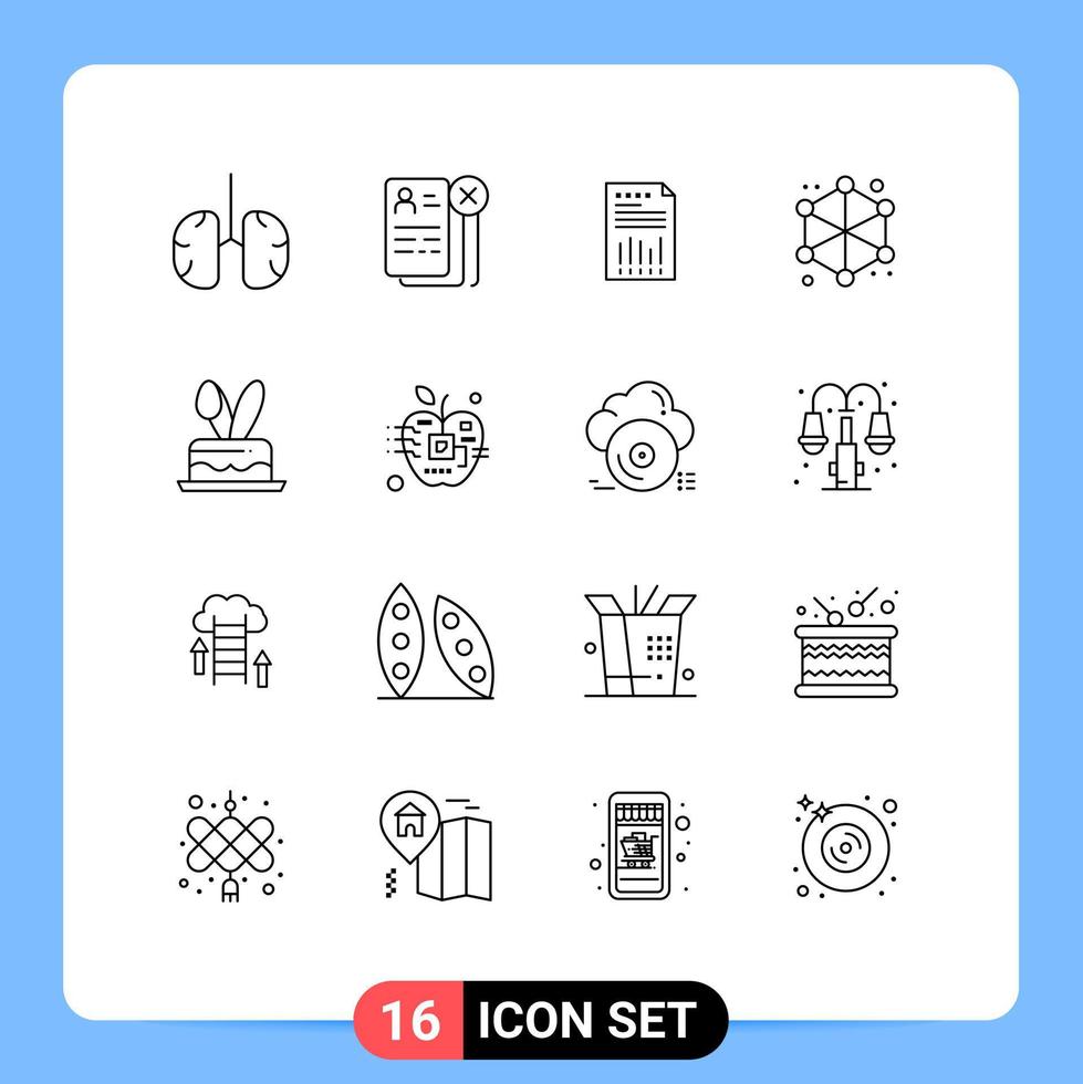 Group of 16 Outlines Signs and Symbols for analytics paper job graph data Editable Vector Design Elements Free Vector and Free SVG