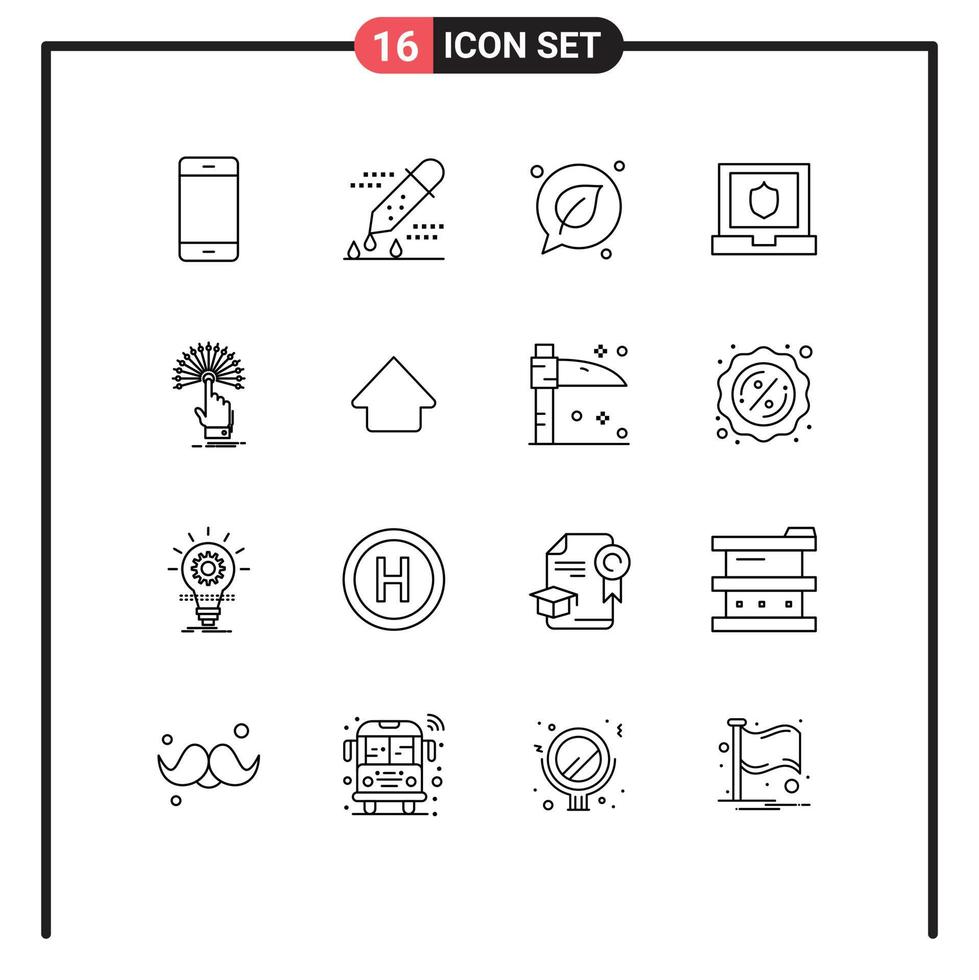 16 Universal Outlines Set for Web and Mobile Applications reach security pipette dropper laptop leaf Editable Vector Design Elements Free Vector