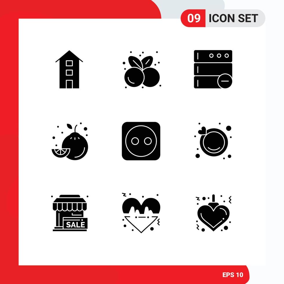 9 Universal Solid Glyphs Set for Web and Mobile Applications plug lemon healthy food fruit server Editable Vector Design Elements
