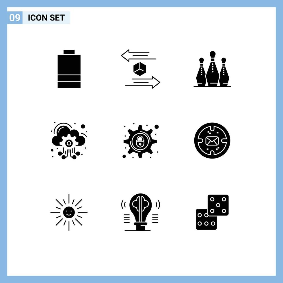9 Universal Solid Glyphs Set for Web and Mobile Applications cyber crime hosting server bowling hosting sport Editable Vector Design Elements Free Vector