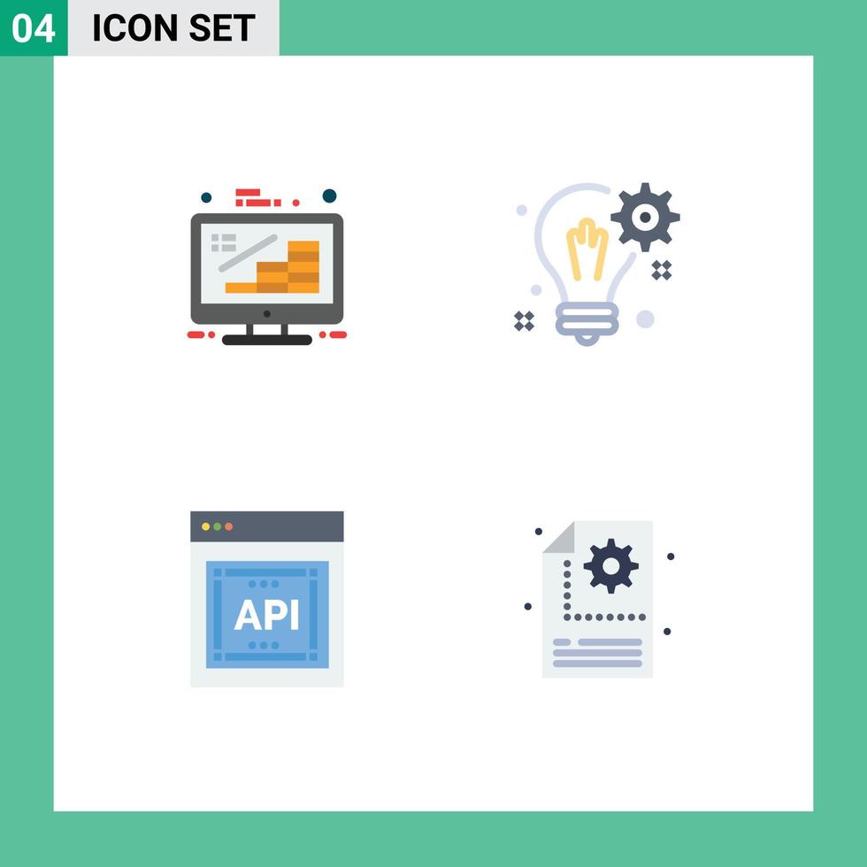 User Interface Pack of 4 Basic Flat Icons of business setting growth idea api concept Editable Vector Design Elements Free Vector