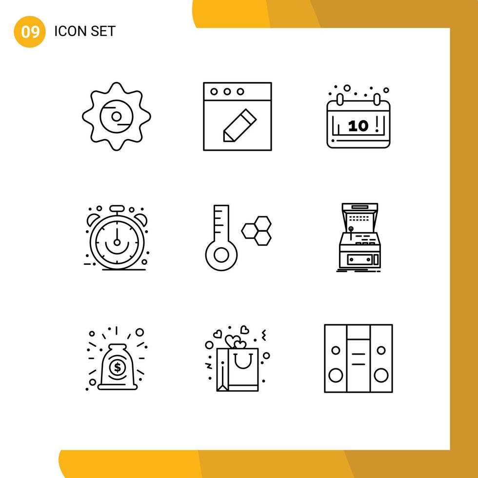 Pictogram Set of 9 Simple Outlines of temperature meter time calendar sale ecommerce Editable Vector Design Elements