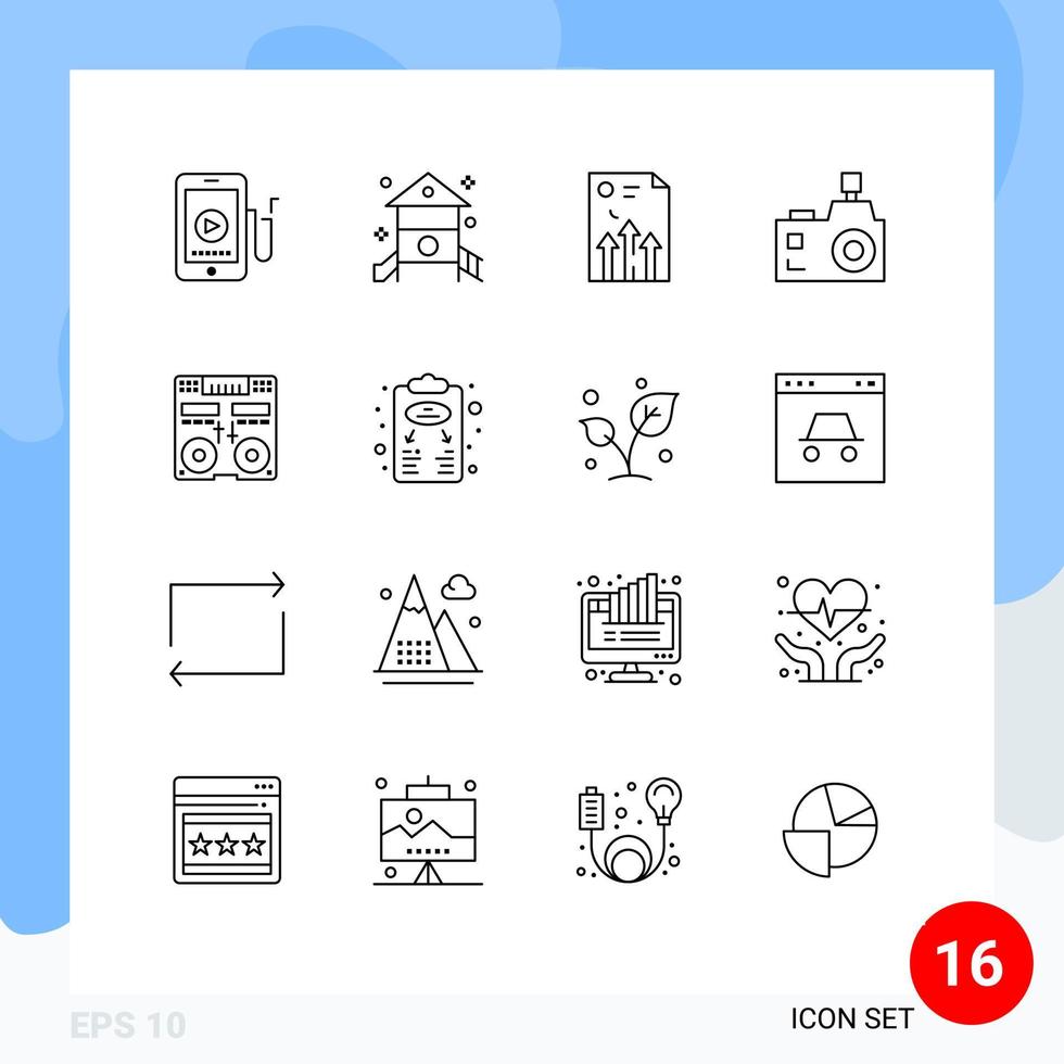 16 User Interface Outline Pack of modern Signs and Symbols of photographer flash camera play camera graph Editable Vector Design Elements