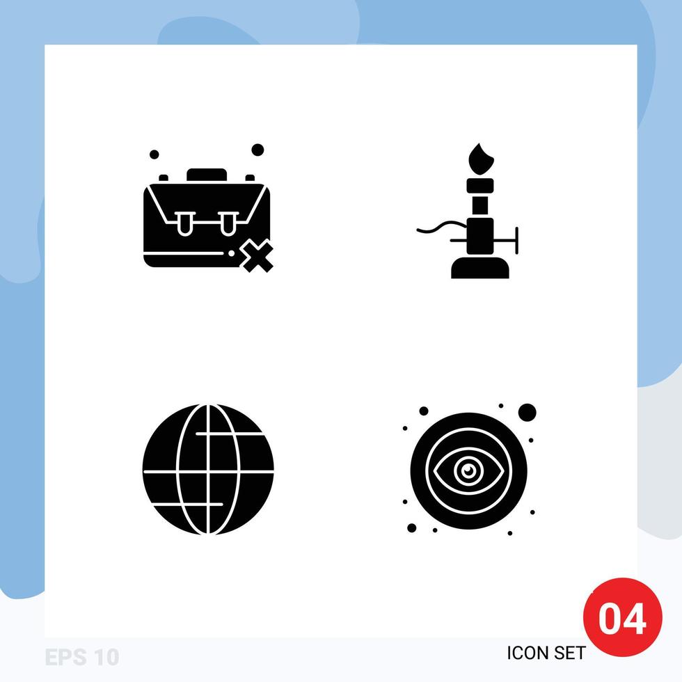 Set of 4 Modern UI Icons Symbols Signs for idleness torch problem lab globe Editable Vector Design Elements