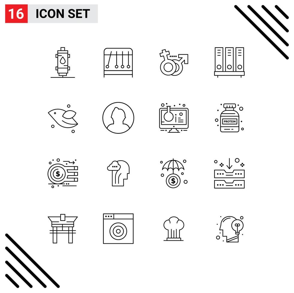 Group of 16 Modern Outlines Set for file database science data symbol Editable Vector Design Elements