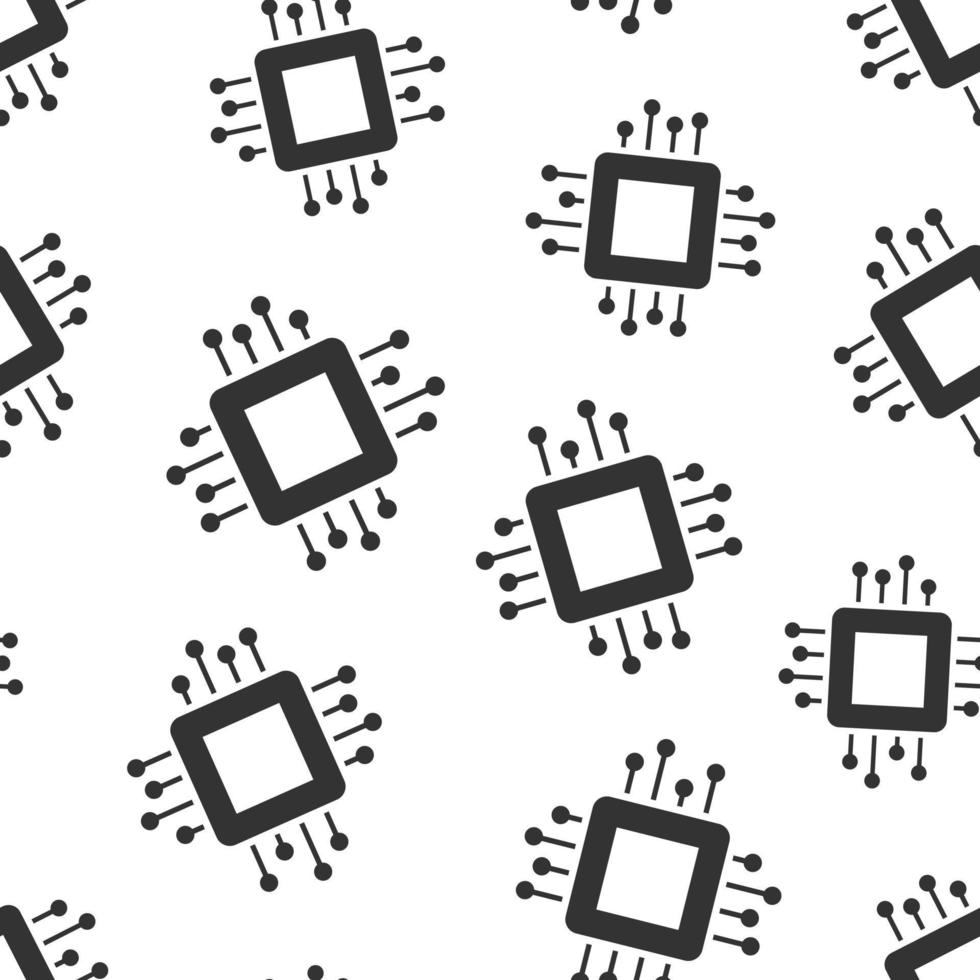 Computer cpu icon in flat style. Circuit board vector illustration on white isolated background. Motherboard chip seamless pattern business concept. Pro Vector