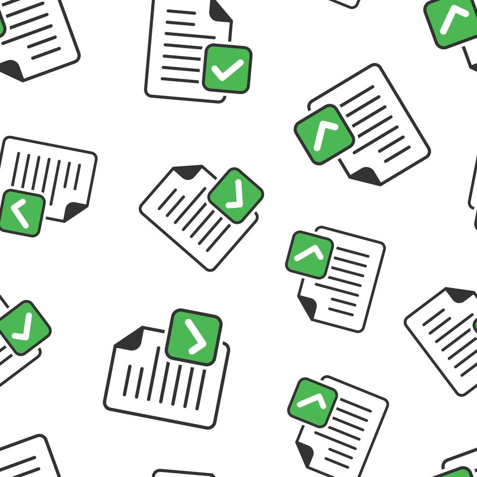 Document accepted icon in flat style. Correct vector illustration on white isolated background. Check message seamless pattern business concept. Pro Vector