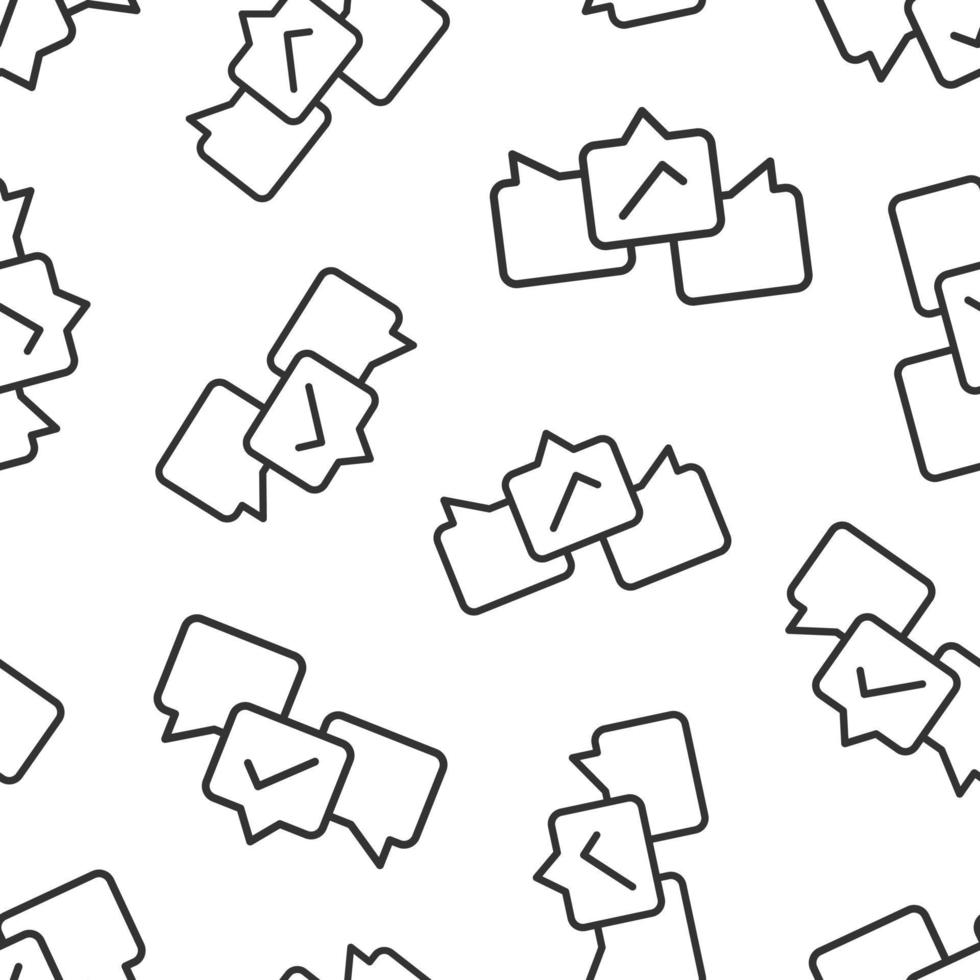 Speak chat sign icon in flat style. Speech bubble with check mark vector illustration on white isolated background. Team discussion button seamless pattern business concept. Pro Vector