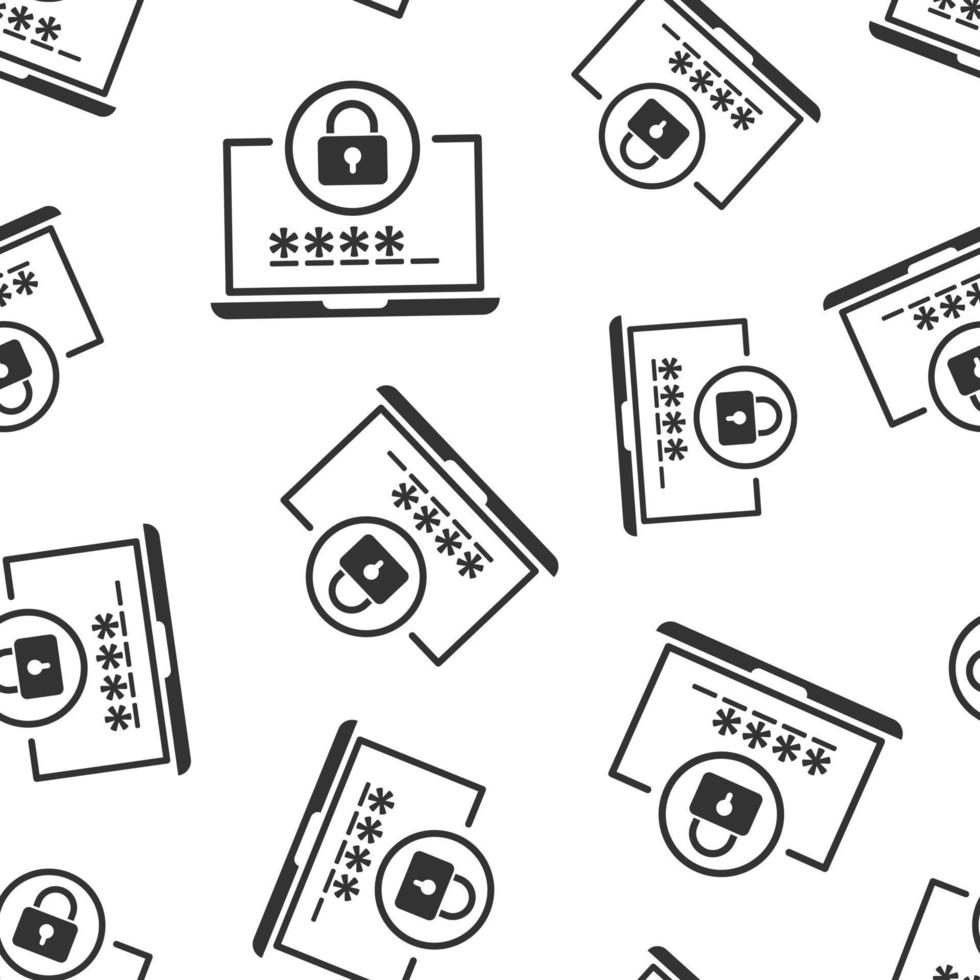 Laptop with password icon in flat style. Computer access vector illustration on white isolated background. Padlock entry seamless pattern business concept. Pro Vector