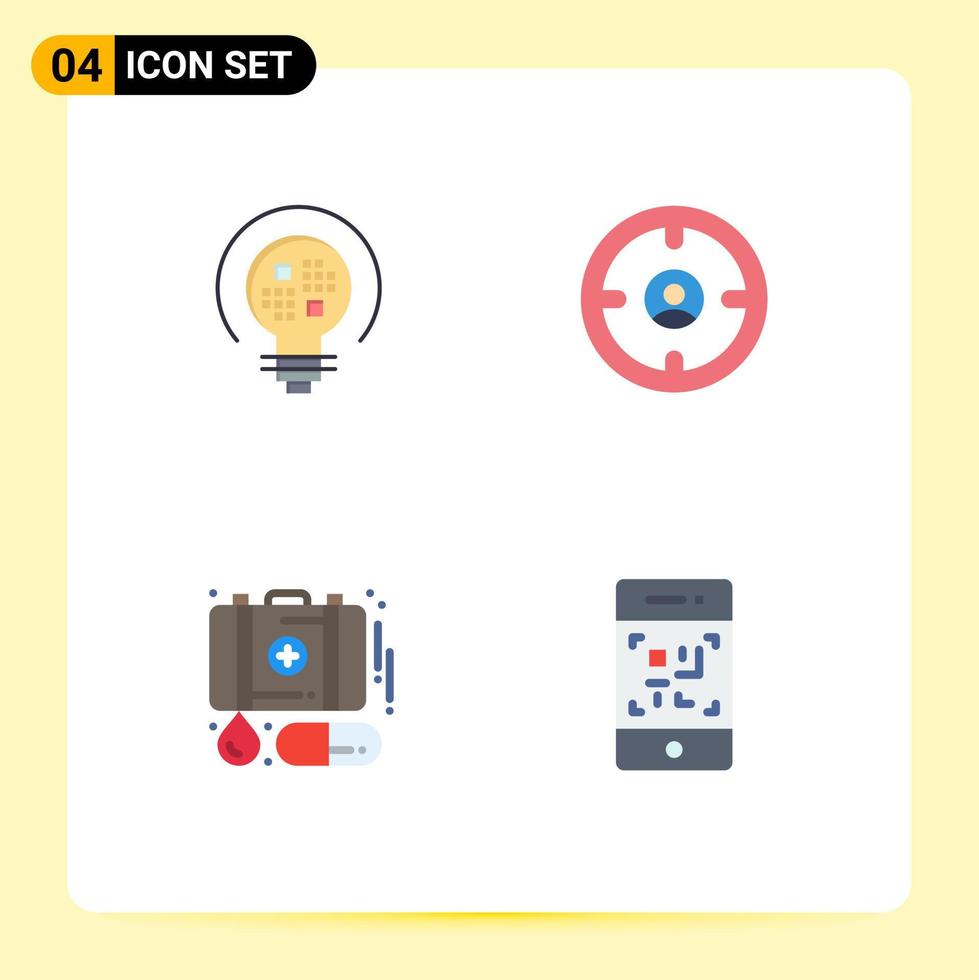 Set of 4 Modern UI Icons Symbols Signs for data case bulb find first aid Editable Vector Design Elements