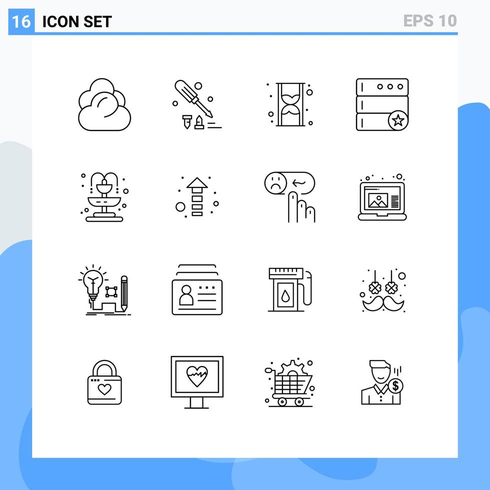 16 Universal Outlines Set for Web and Mobile Applications fountain city glass server database Editable Vector Design Elements