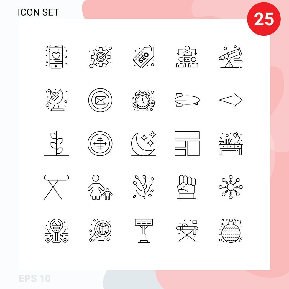 Editable Vector Line Pack of 25 Simple Lines of spyglass communication web office connection Editable Vector Design Elements