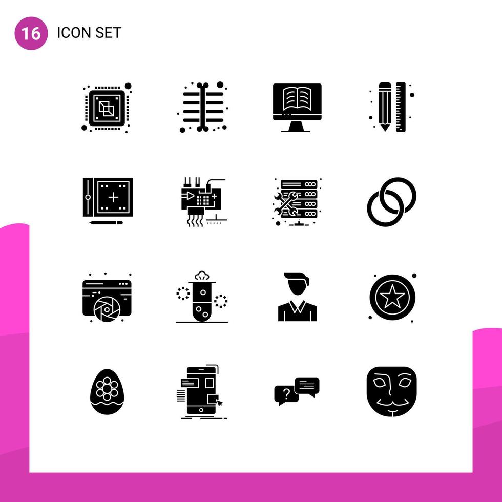 Set of 16 Modern UI Icons Symbols Signs for design design computer pencil draw Editable Vector Design Elements