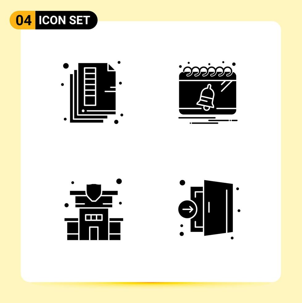 Modern Set of 4 Solid Glyphs and symbols such as document home print calendar property Editable Vector Design Elements