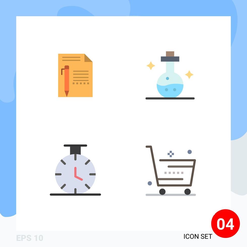 Universal Icon Symbols Group of 4 Modern Flat Icons of document tube paper flask time Editable Vector Design Elements