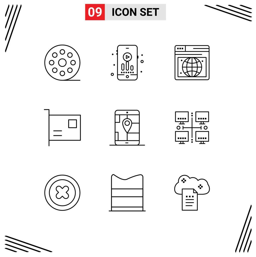 Modern Set of 9 Outlines and symbols such as location app web hardware devices Editable Vector Design Elements Free Vector
