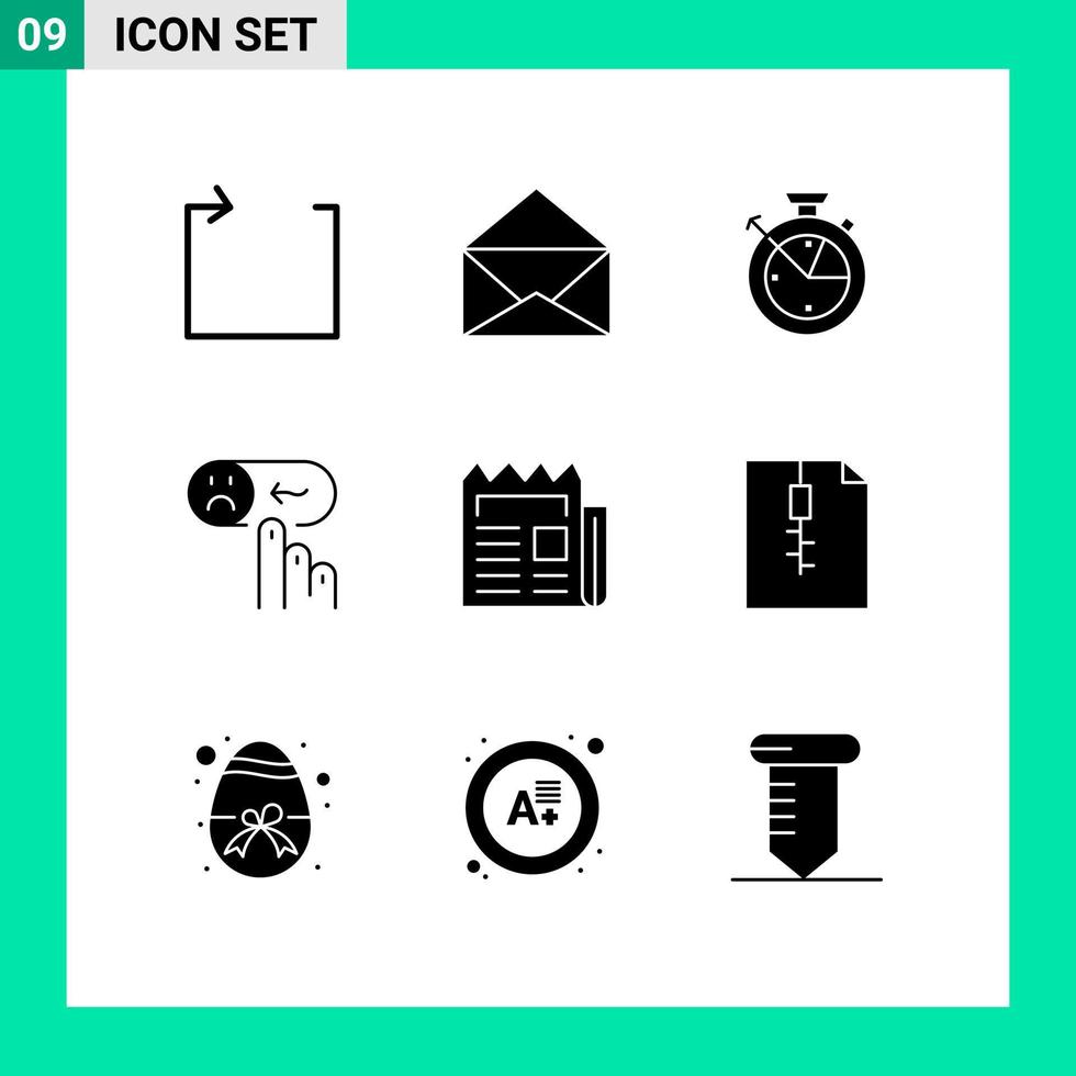 9 User Interface Solid Glyph Pack of modern Signs and Symbols of newsletter media clock support rating Editable Vector Design Elements