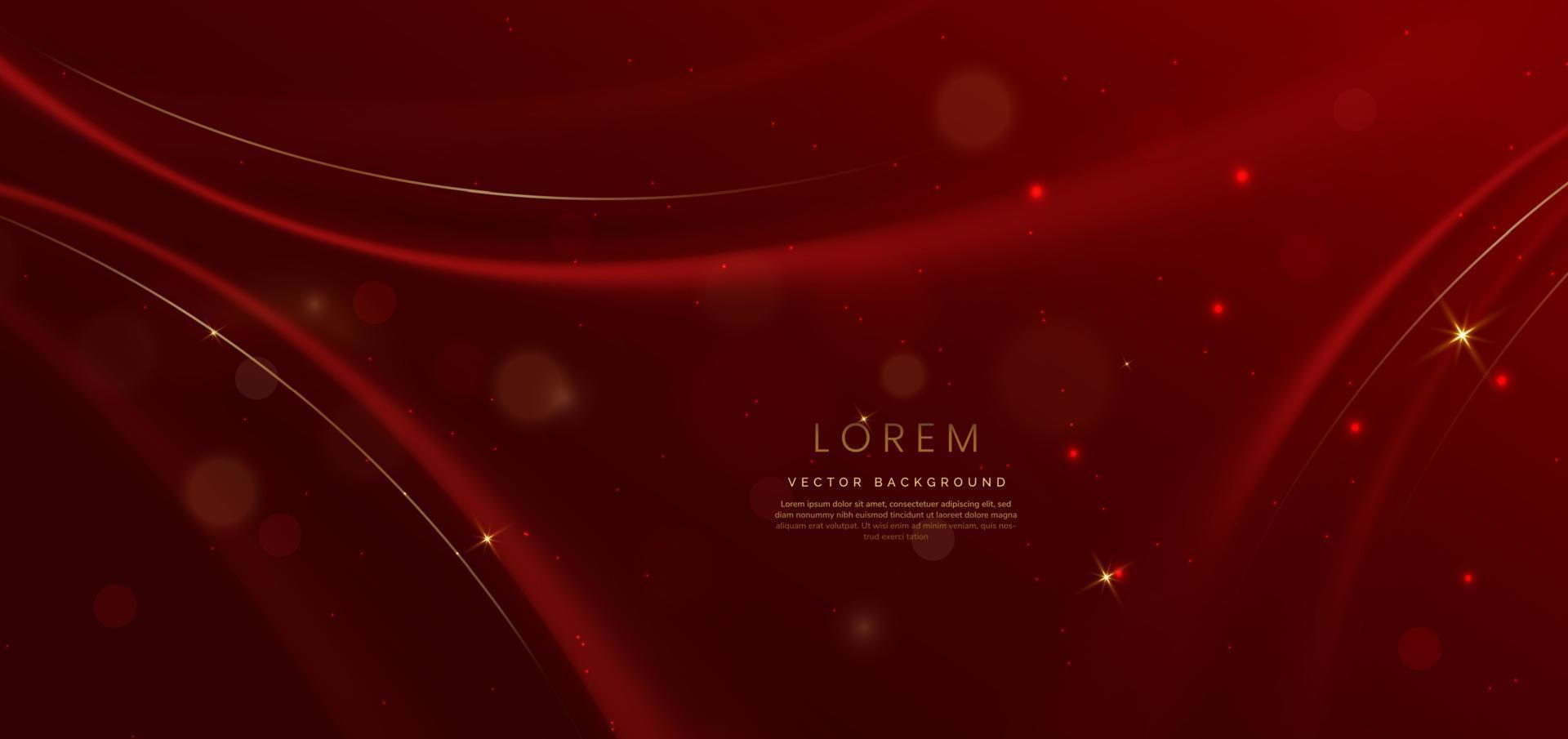 Abstract red elegant background with gold curved lines and ligthing effect and bokeh. Luxury design style. Pro Vector