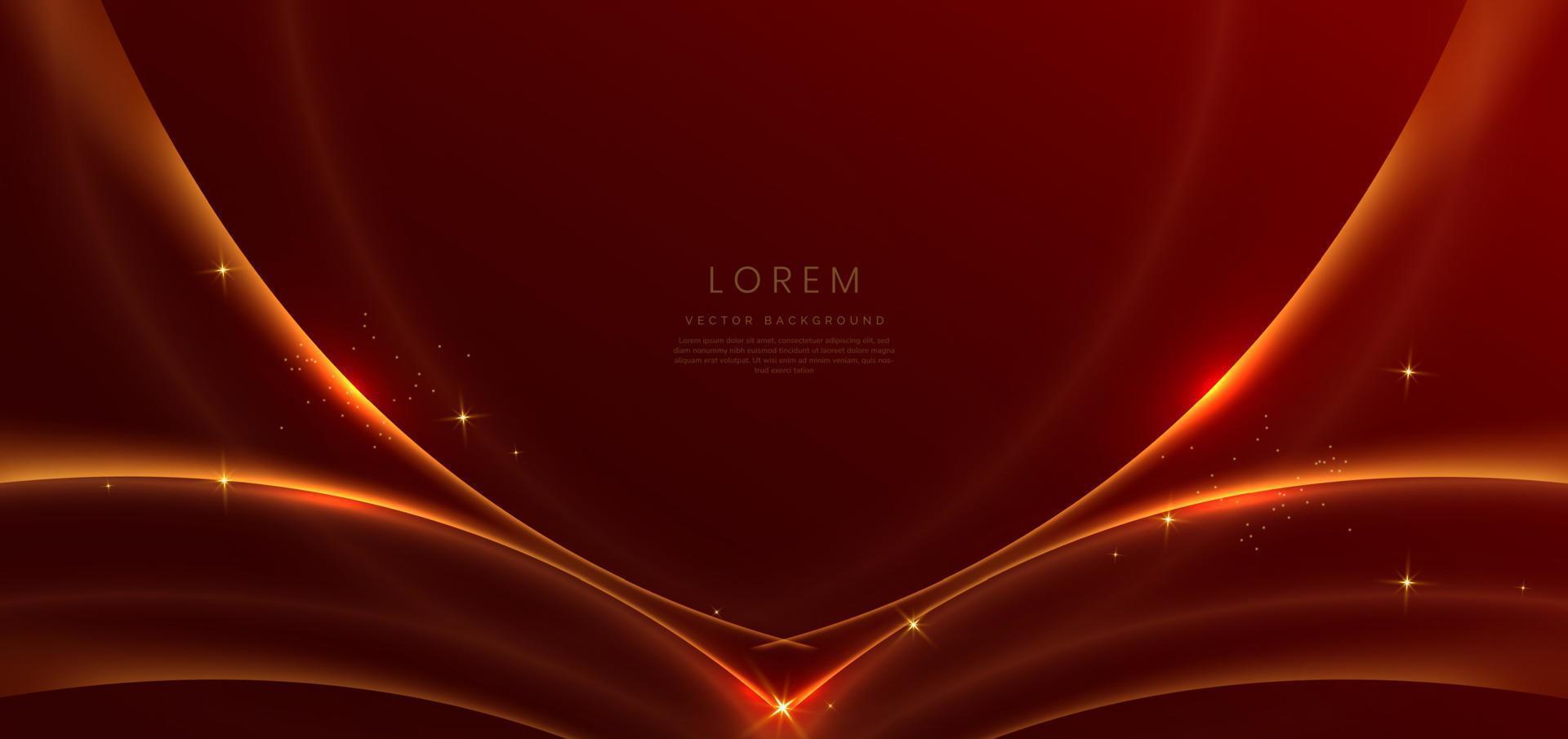 Abstract curved gold light on red background with lighting effect and sparkle with copy space for text. Luxury design style. Pro Vector