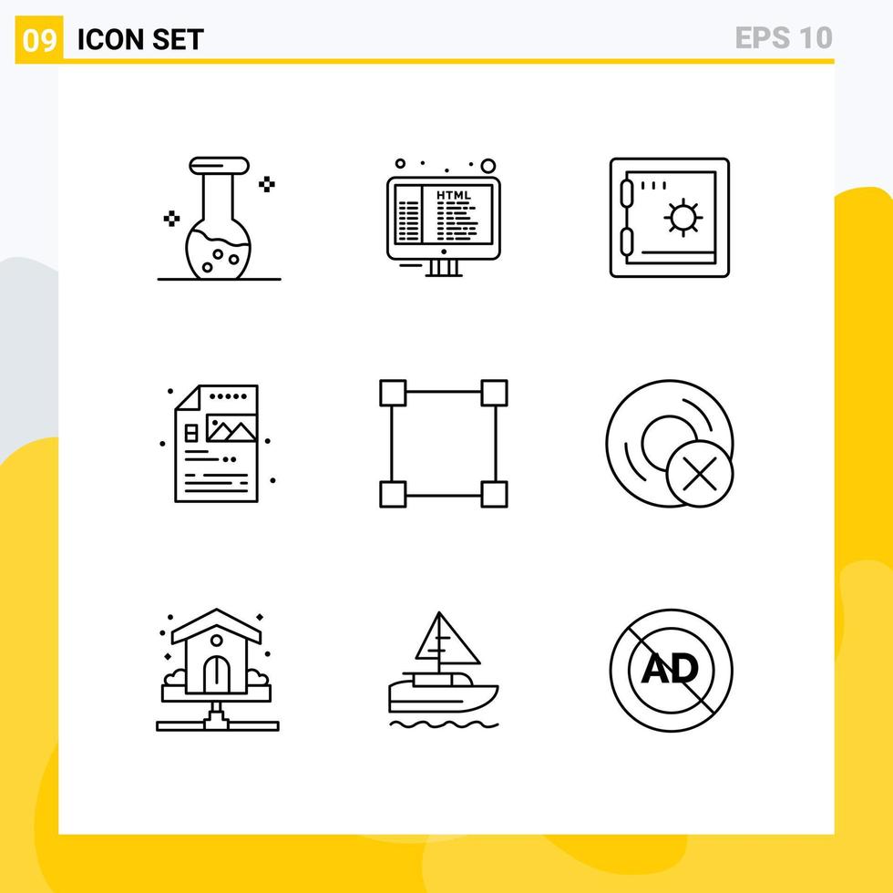 Pictogram Set of 9 Simple Outlines of rectangle path bank image process Editable Vector Design Elements Free Vector